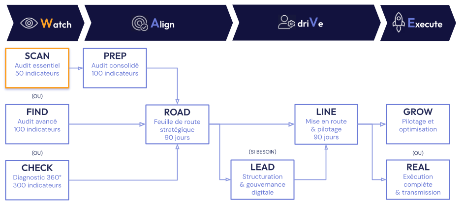 Premier regard externe rapide. Idéal pour identifier les freins visibles et débloquer des gains immédiats sans mobilisation lourde.